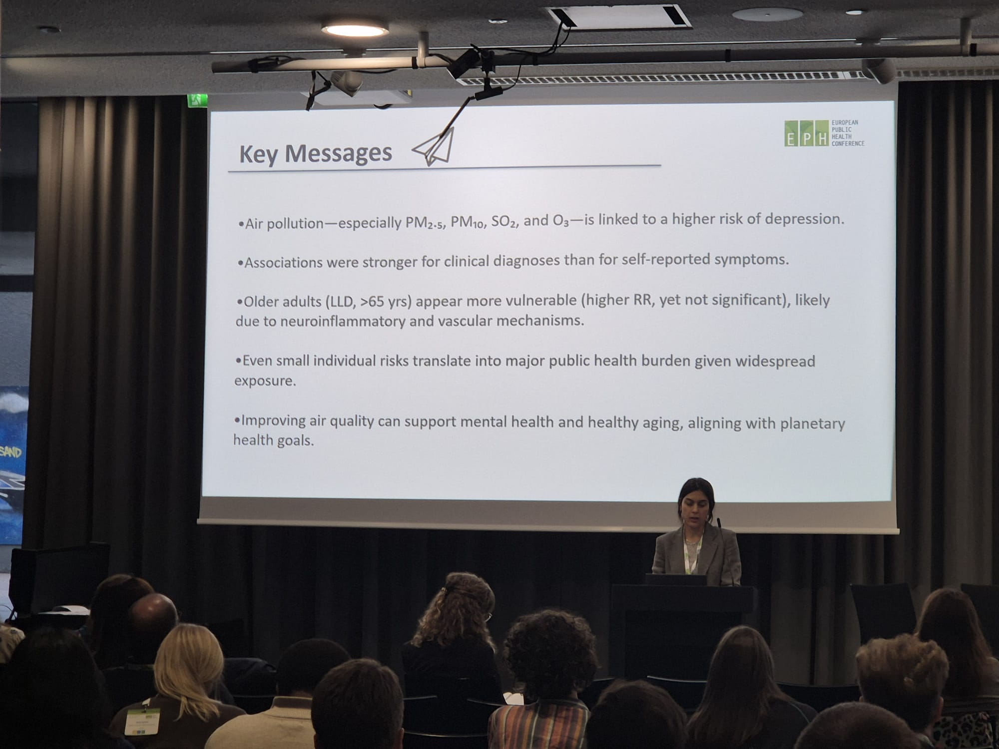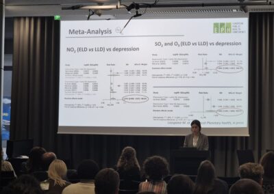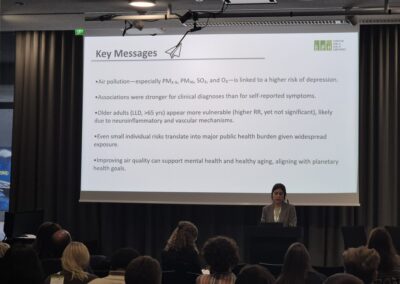 Roberta’s presentation, “Air Pollution exposure, socio-economic factors and early-onset depression,” synthesised results from a large systematic review and meta-analysis of over 17 million individuals. The study confirms a growing body of evidence linking environmental pollution to mental health outcomes throughout the life course.
