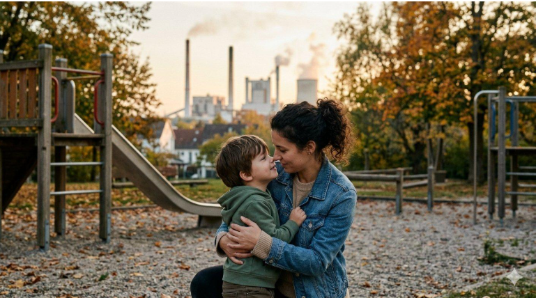Children living near industrial areas face heightened exposure to harmful air pollutants from their earliest years of life (Disclaimer: The images used in this article are AI-generated for illustrative purposes (Google Gemini) and do not depict real individuals or specific locations.)